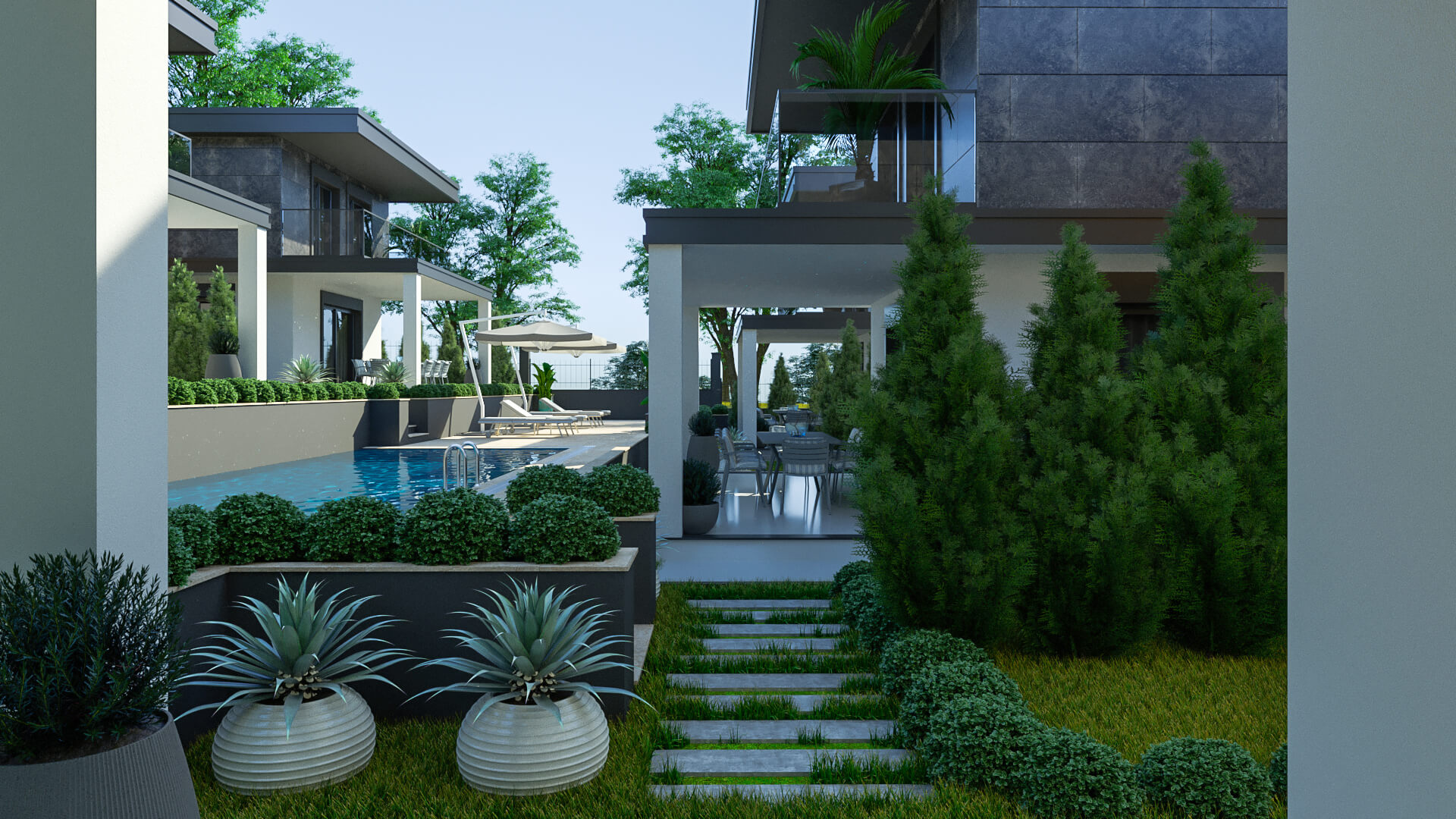 | Bahçelerde ortak peyzaj ve otomatik sulama sistemi |