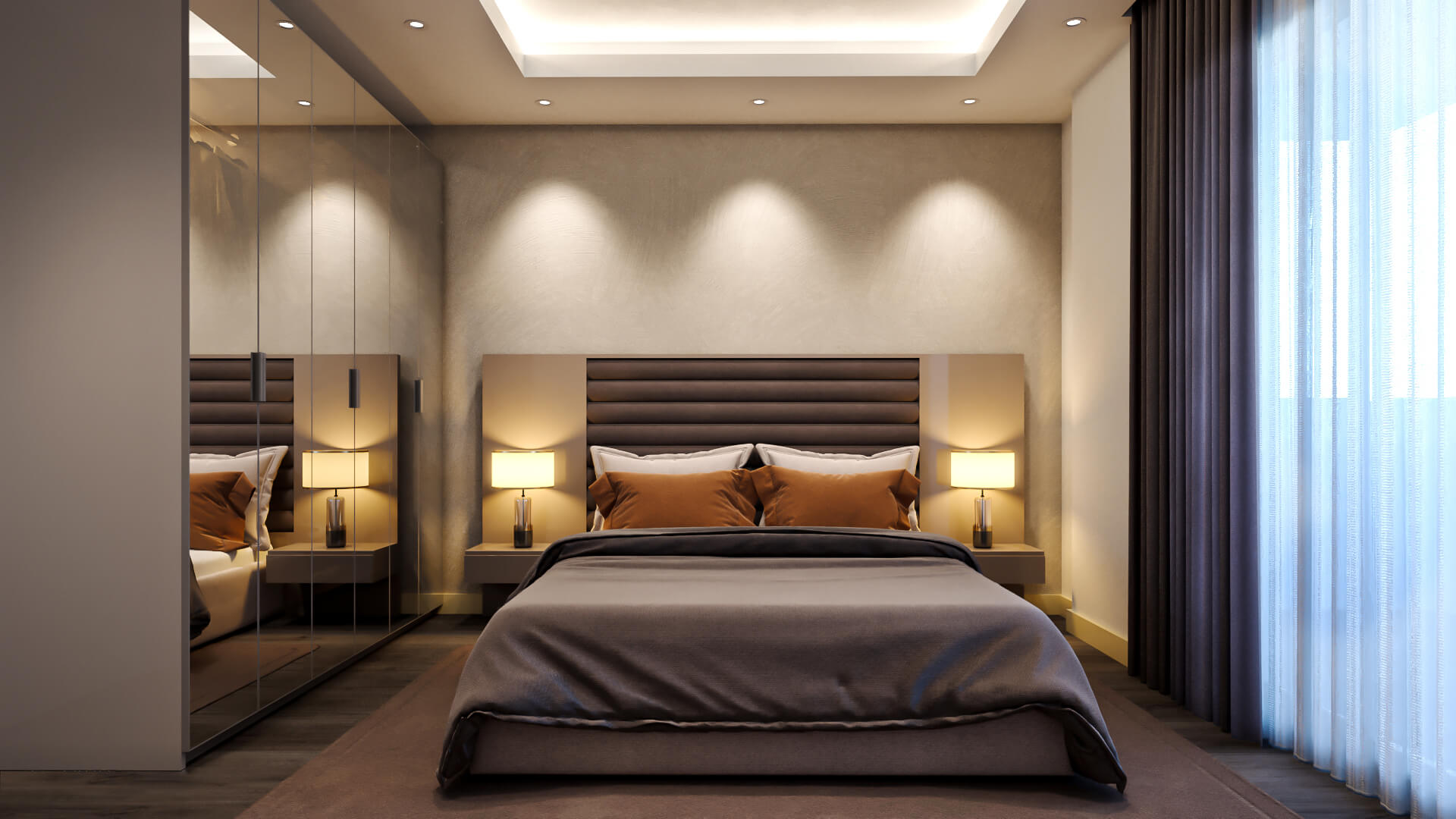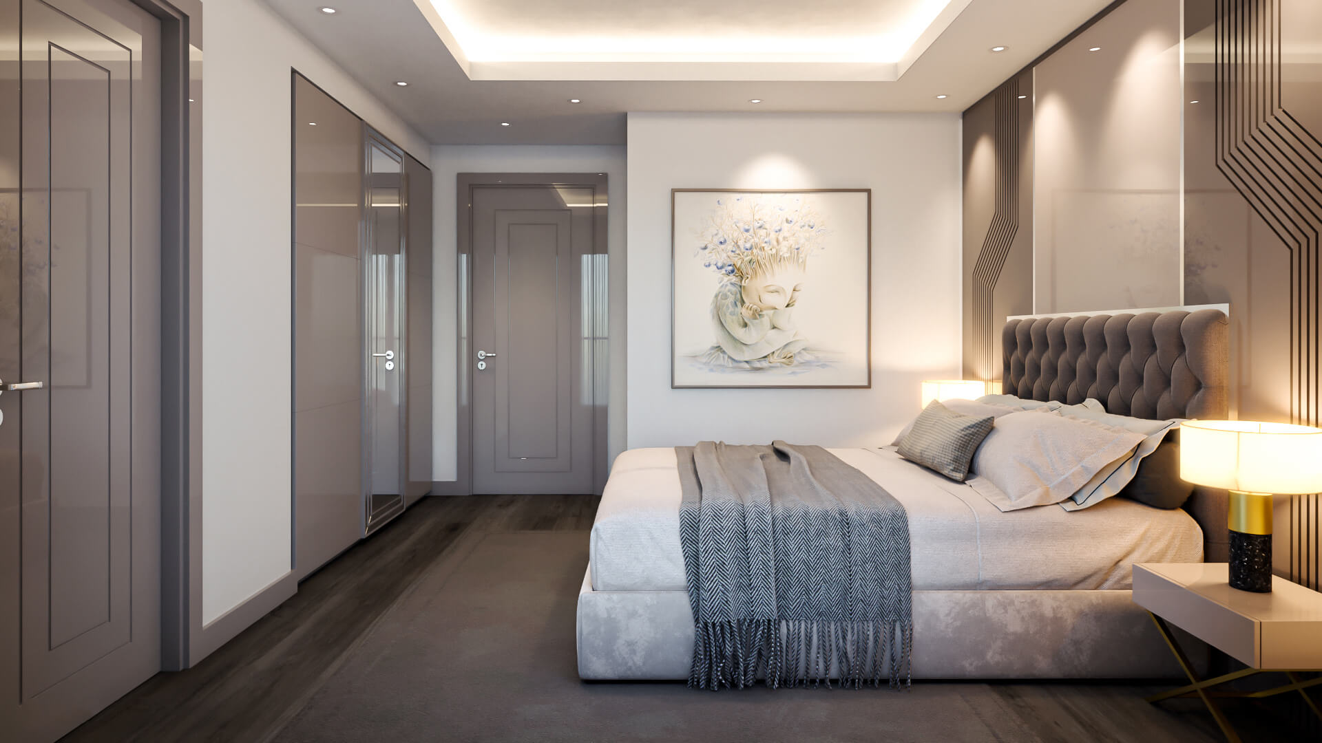 | Tüm yatak odalarında led ışıklı giyinme dolapları |